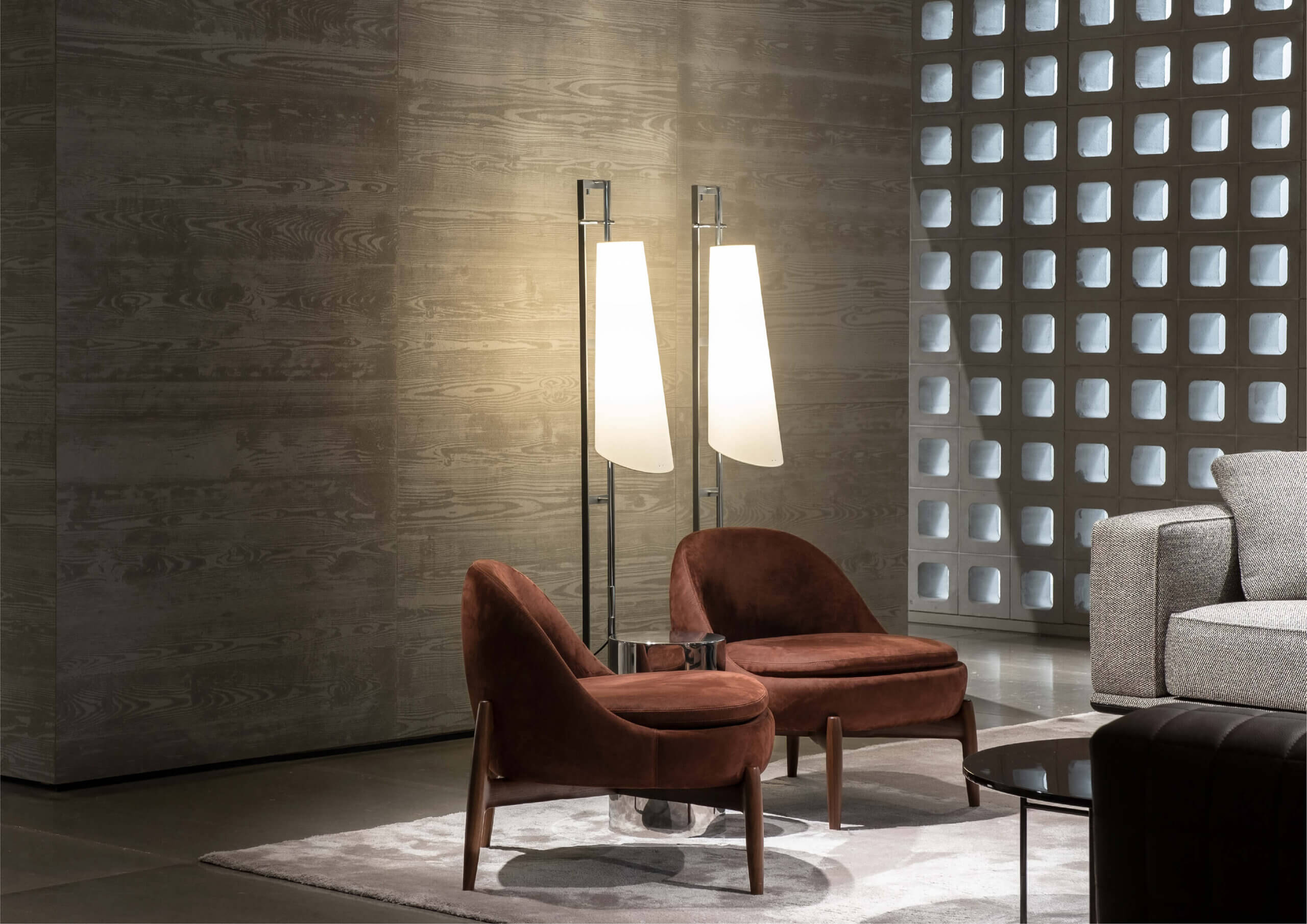 Lampada da terra con struttura in acciaio color antracite e supporto paralume in ottone cromato. 2x75w E27 Dimmer