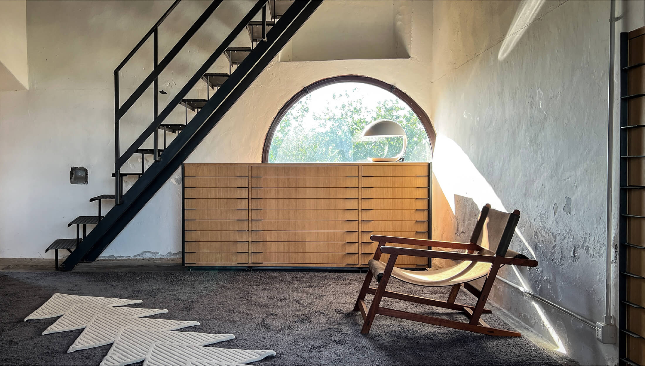 Eclettico mobile per tenere in ordine indumenti o documenti; realizzato in legno di noce. Le maniglie e i profili a protezione degli angoli sono realizzati in acciaio con finitura nickel anticato.